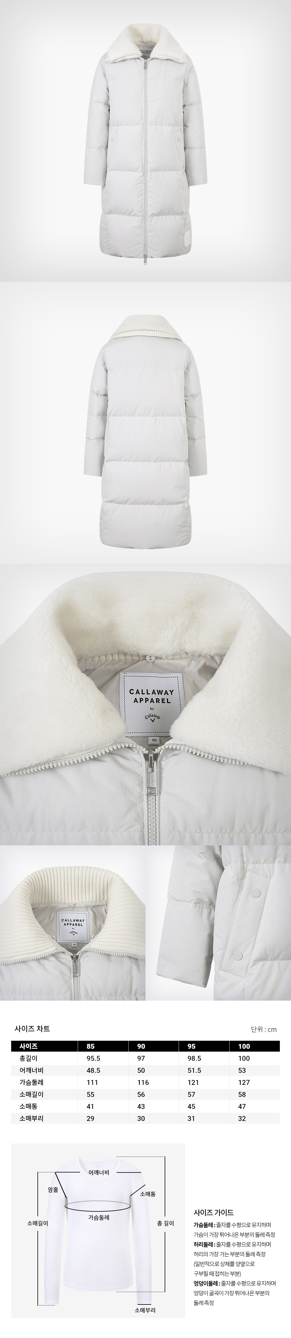 겨울철 라운딩시 필수품인 롱다운을 업그레이드한 제품으로 후드대신 카라부분에 탈착가능 페이크퍼를 사용하여 바람막이에 효과적인 제품입니다