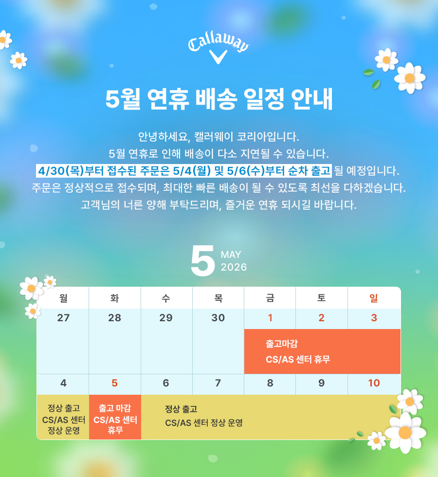 5월 연휴 배송 일정 안내